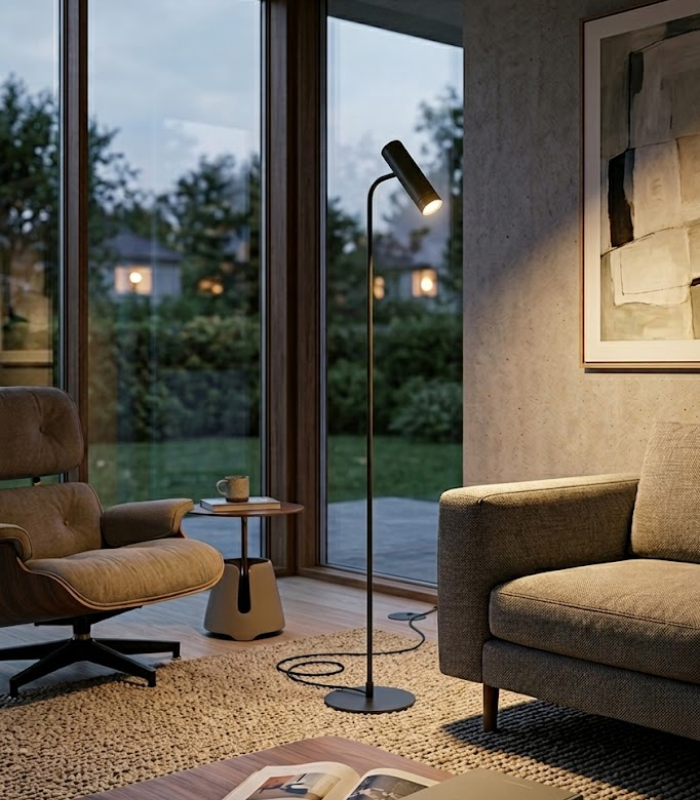 La CAVIA DE PIE NEGRO es una lámpara de pie pensada para quienes buscan elegancia, simpleza y practicidad en la iluminación. Su estructura delgada y vertical en color negro le da una presencia sofisticada que se integra fácilmente en ambientes modernos, minimalistas o de estilo industrial.