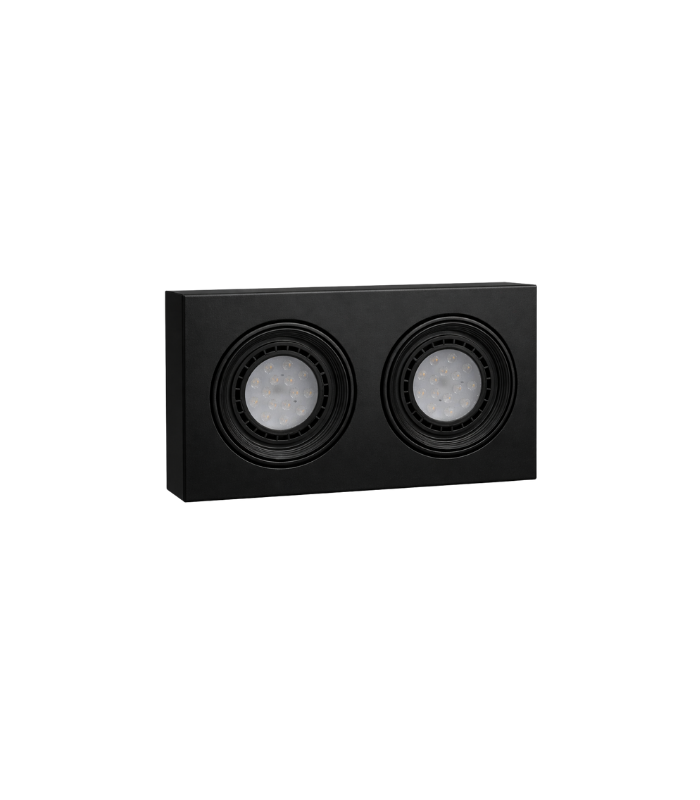 Su formato lineal de dos luces junto al sistema cardánico orientable permite dirigir la iluminación con precisión, logrando acentos lumínicos definidos o una iluminación focalizada según las necesidades del ambiente. Está diseñado para lámparas AR111 LED, brindando una luz potente, eficiente y de alto impacto visual.