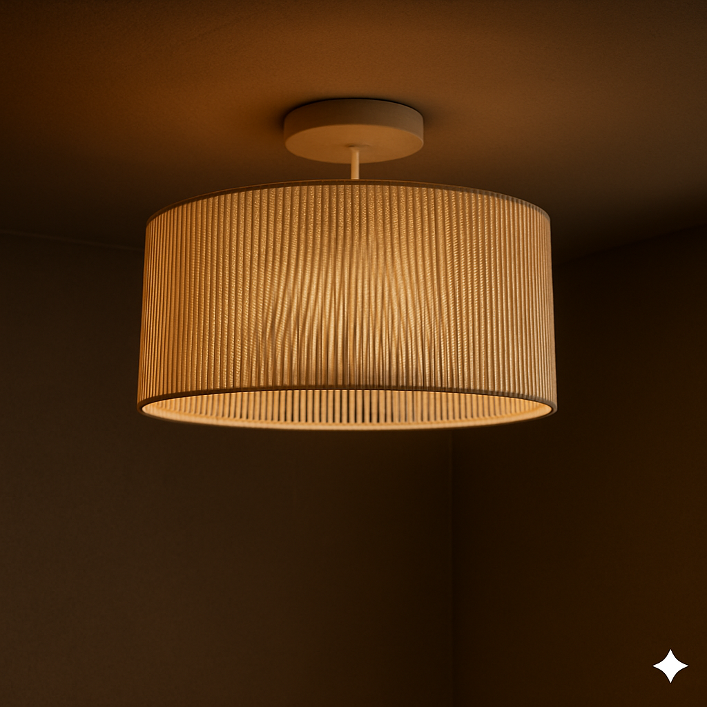 Con un diámetro de 40 cm y una altura aproximada de 22 cm, este modelo ofrece presencia sin exceso de volumen, integrándose fácilmente en distintos tipos de ambientes. Su portalámparas E27 brinda libertad para utilizar diferentes lámparas LED, ajustando la temperatura de color según el clima que se quiera lograr.